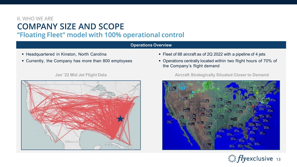 II. WHO WE ARE COMPANY SIZE AND SCOPE “Floating Fleet” model with 100% operational control Operations Overview ▪ Headquartered in Kinston, North Carolina ▪ Fleet of 88 aircraft as of 2Q 2022 with a pipeline of 4 jets ▪ Currently, the Company has more than 800 employees▪ Operations centrally located within two flight hours of 70% of the Company’s flight demand Jan ’22 Mid Jet Flight Data Aircraft Strategically Situated Closer to Demand 13