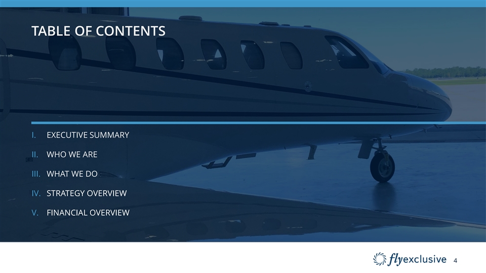 TABLE OF CONTENTS I. EXECUTIVE SUMMARY II. WHO WE ARE III. WHAT WE DO IV. STRATEGY OVERVIEW V. FINANCIAL OVERVIEW 4
