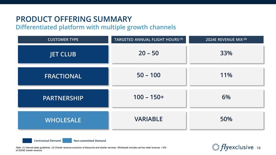 PRODUCT OFFERING SUMMARY Differentiated platform with multiple growth channels (1) (2) CUSTOMER TYPE TARGETED ANNUAL FLIGHT HOURS 2024E REVENUE MIX 20 – 50 33% JET CLUB 50 – 100 11% FRACTIONAL 100 – 150+ 6% PARTNERSHIP VARIABLE 50% WHOLESALE Contractual Demand Non-committed Demand Note: (1) Internal sales guidelines. (2) Charter revenue exclusive of discounts and charter services. Wholesale includes ad-hoc retail revenue, 1.6% 18 of 2024E charter revenue.